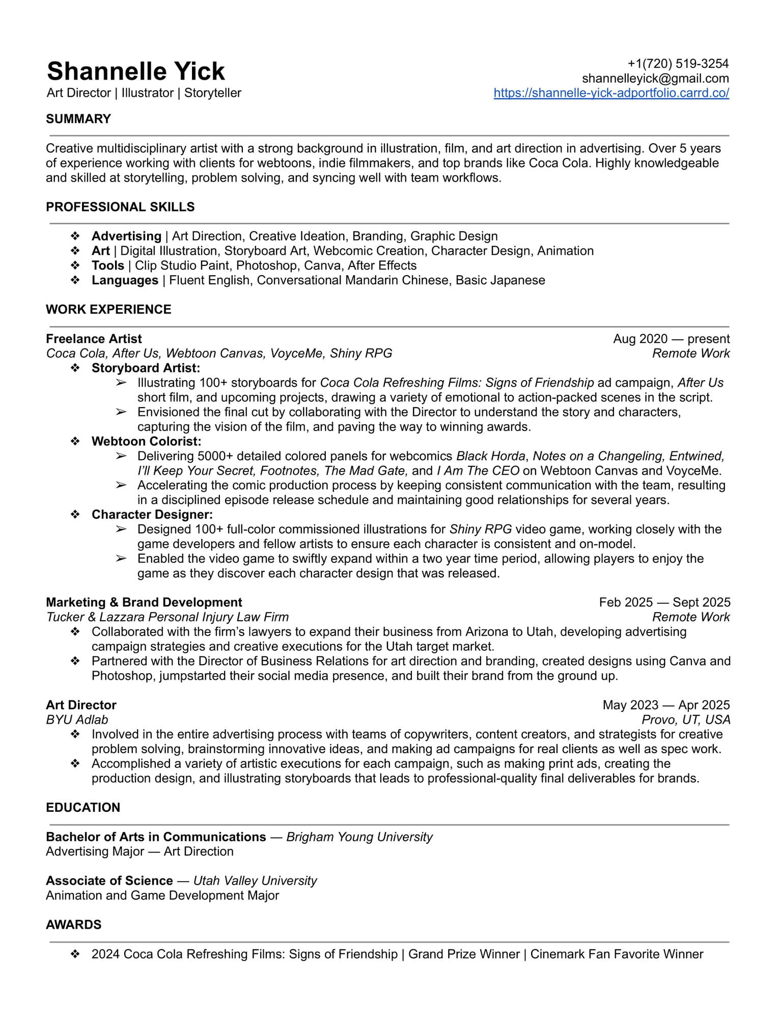 Team:Shannelle Yick (Art Director / Storyboard Artist)