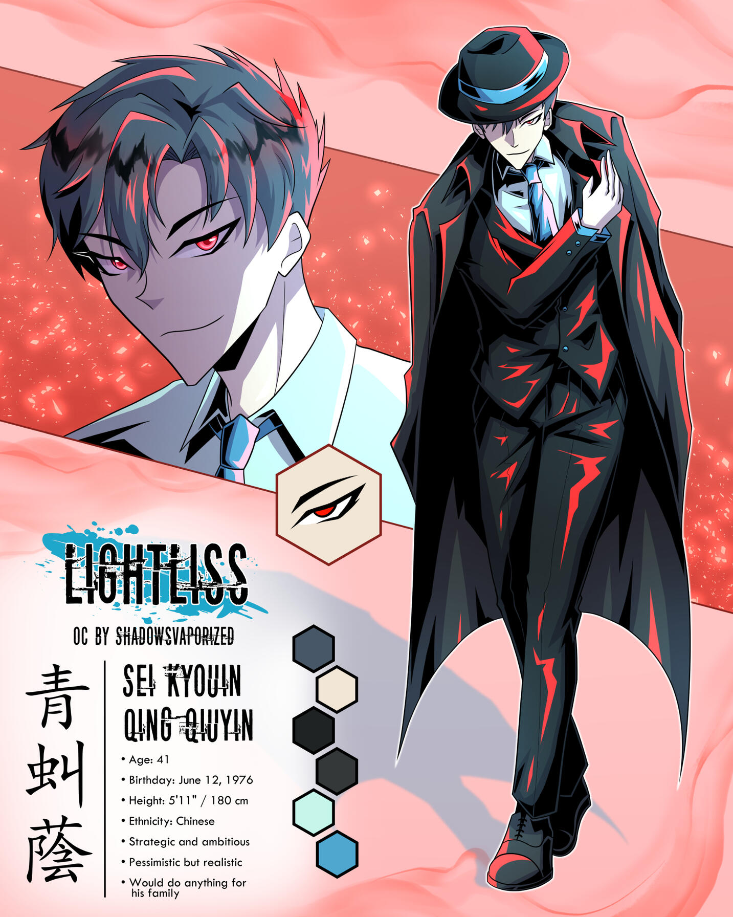 Even with FigureX in shambles, it's not over yet.Luca's longtime friend and business partner is still alive, constantly on the run from something.In addition to shadows, there is another entity: Darkness.Despite seemingly evil, shadows are actually a neutral force, like light. However, Darkness goes further and is far more powerful and dangerous.QiuYin dabbled into something he shouldn't have. It also doesn't help that QiuYin is Ryuu's real father.While QiuYin learns of the true nature of Darkness, it's still too late. He can't undo the damage he created between him and Ryuu, as well as his heedless ambition.But there is another far more ambitious. The thing that QiuYin has been running from his entire life. The thing that forced him to give his son to Luca as a means of protection.(There's a Season 3 antagonist named Niko, who's another one of Ryuu's close friends, but I haven't drawn him yet. He's the ultimate wielder of Darkness, the backstabber, the one who's gone too far. It's up to the main characters to stop him.)